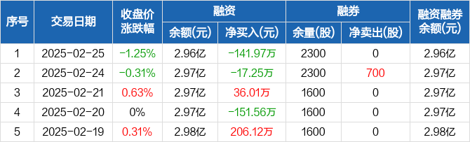 冠豪高新:融资净偿还141.97万元,融资余额2.96亿元(02-25)
