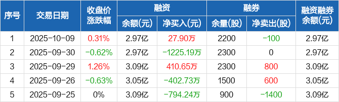 冠豪高新:融资净买入27.9万元,融资余额2.97亿元(10-09)