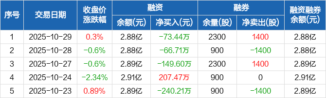 冠豪高新:连续3日融资净偿还累计289.75万元(10-29)