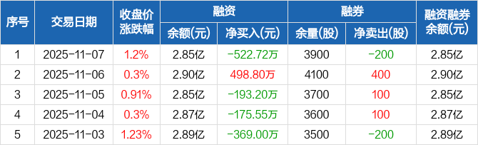 冠豪高新:融资净偿还522.72万元,融资余额2.85亿元(11-07)