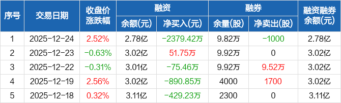 冠豪高新:融资净偿还2379.42万元,创近一年新高(12-24)