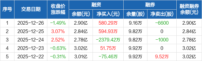 冠豪高新:融资净买入580.29万元,融资余额2.9亿元(12-26)