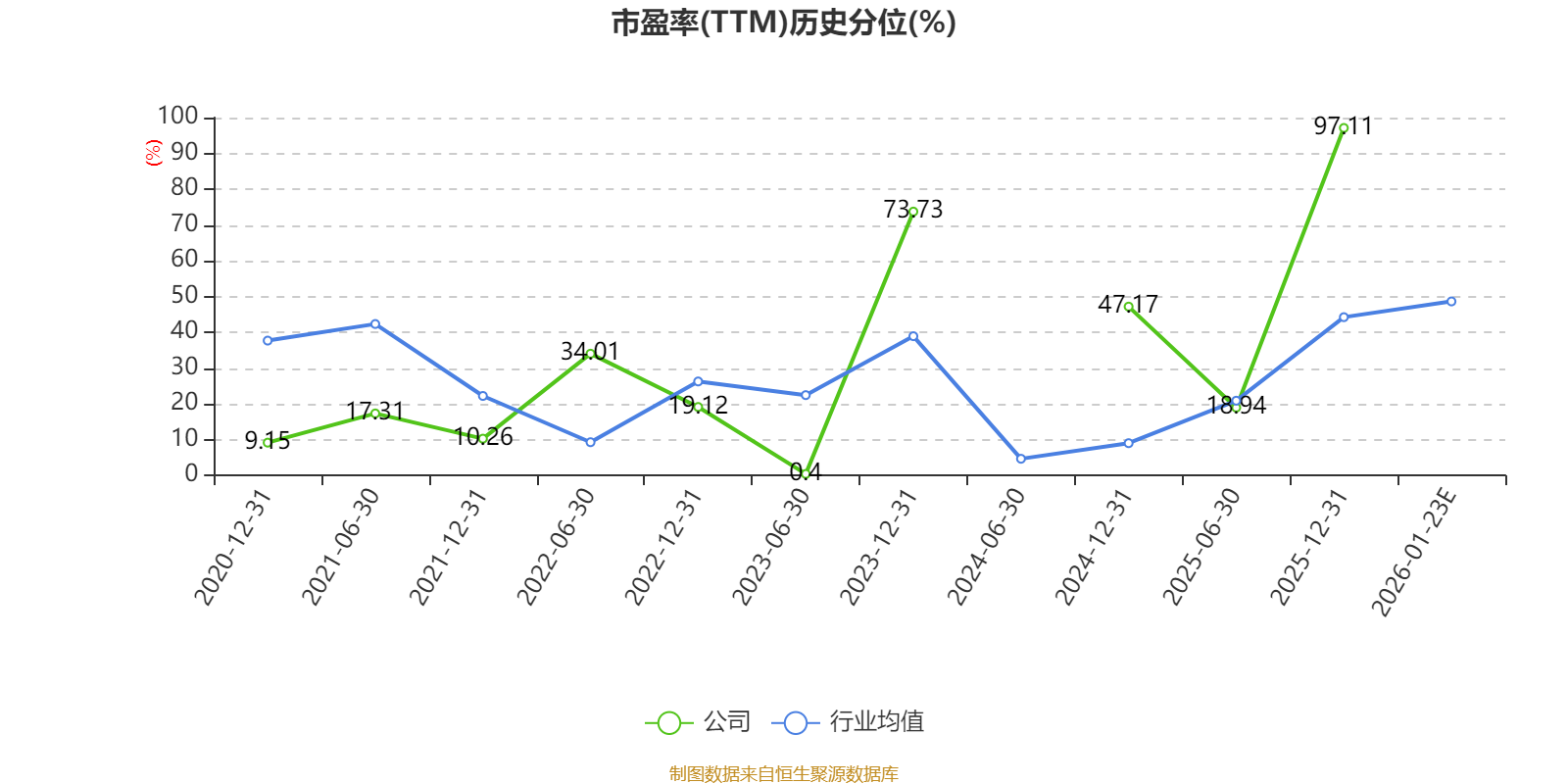 市盈率、市净率为负时,不显示当期分位数,会导致折线图中断。