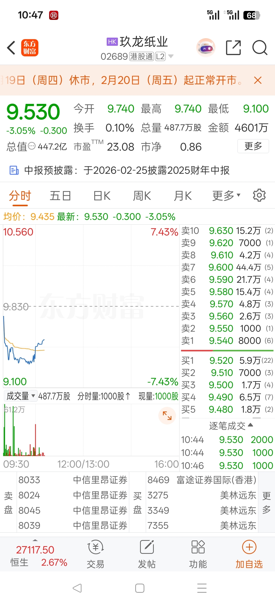 $冠豪高新(SH600433)$ 明天跌多少