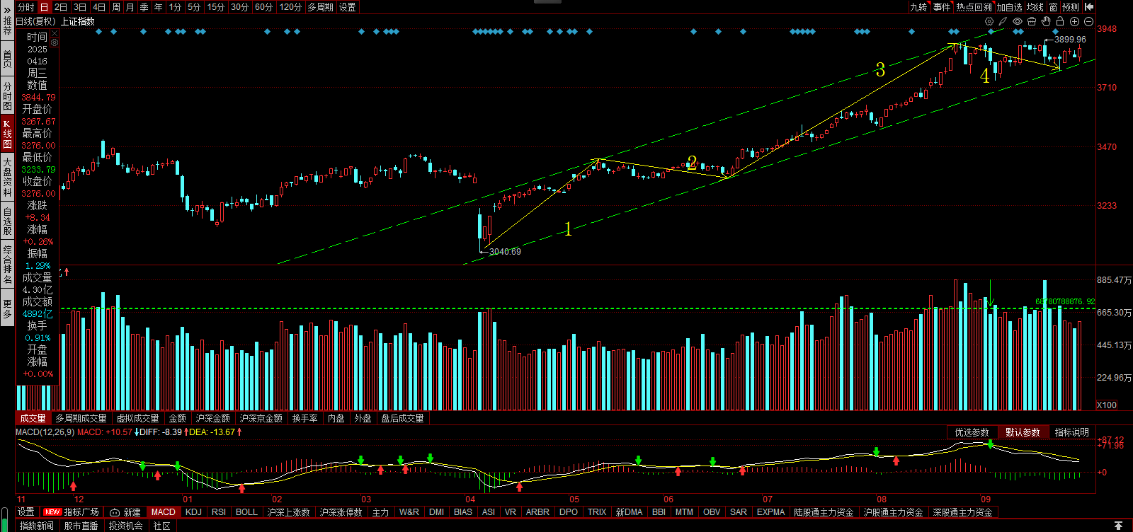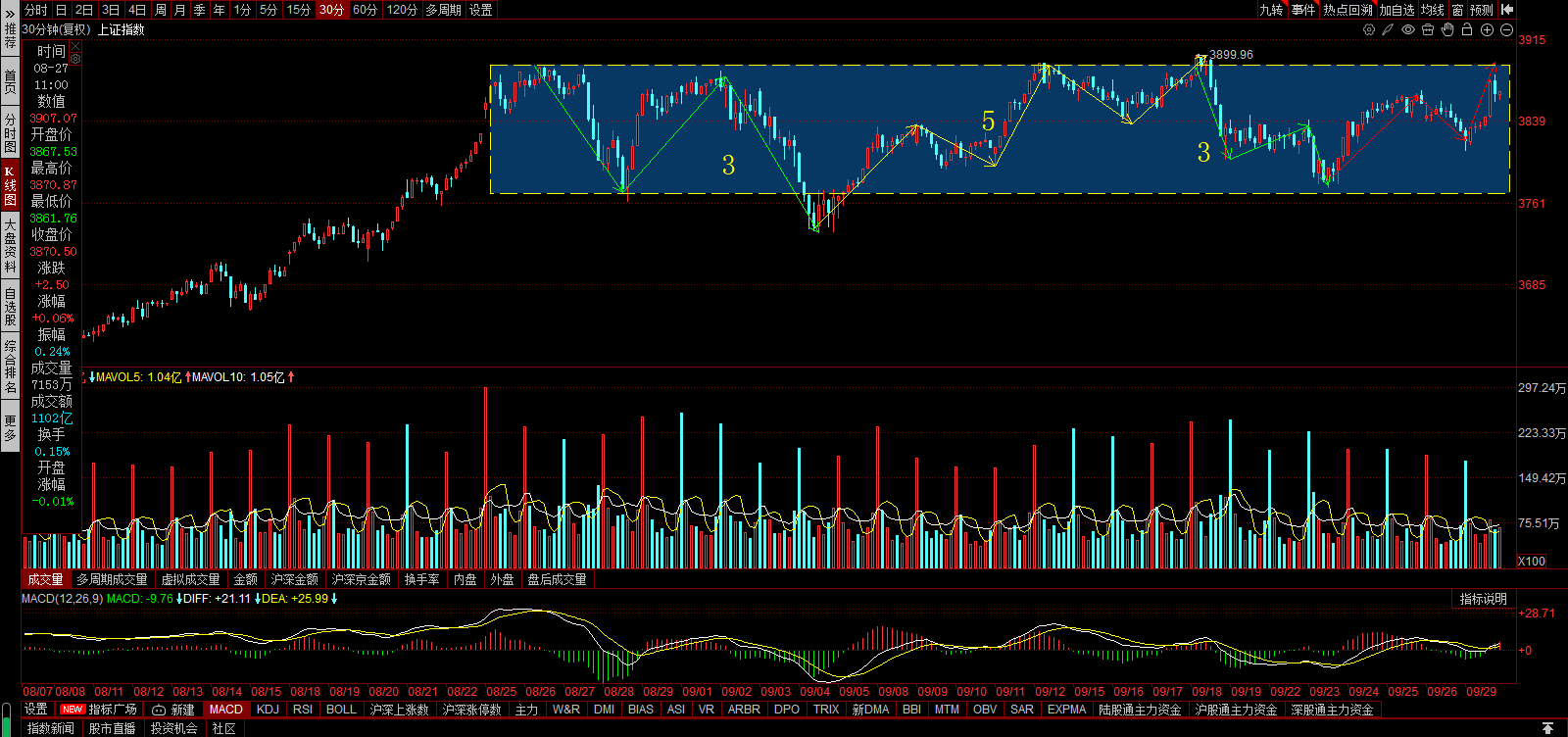 上证小4浪的3-5-3结构已经走完。后面是小5浪的上升结构。