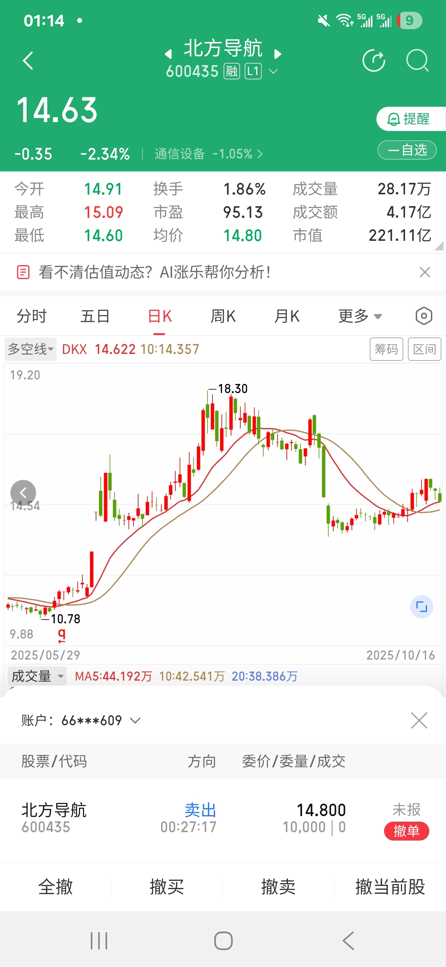 $北方导航(SH600435)$ 干净跑,不跑没机会了