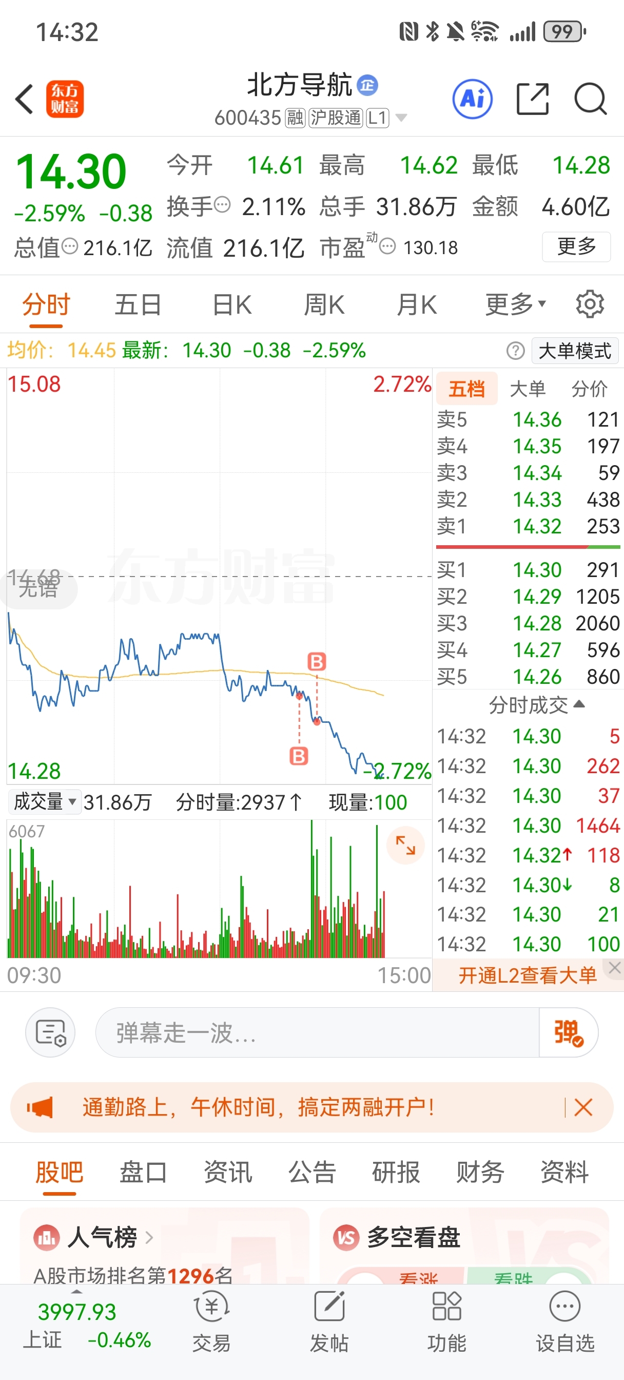 $北方导航(SH600435)$ 补不动了,爱怎么跌怎么跌吧