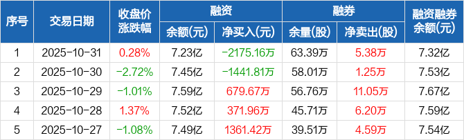 北方导航:融资净偿还2175.16万元,融资余额7.23亿元(10-31)