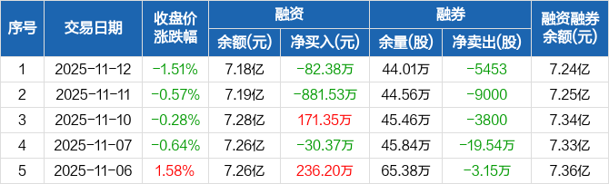 北方导航:融资净偿还82.38万元,融资余额7.18亿元(11-12)