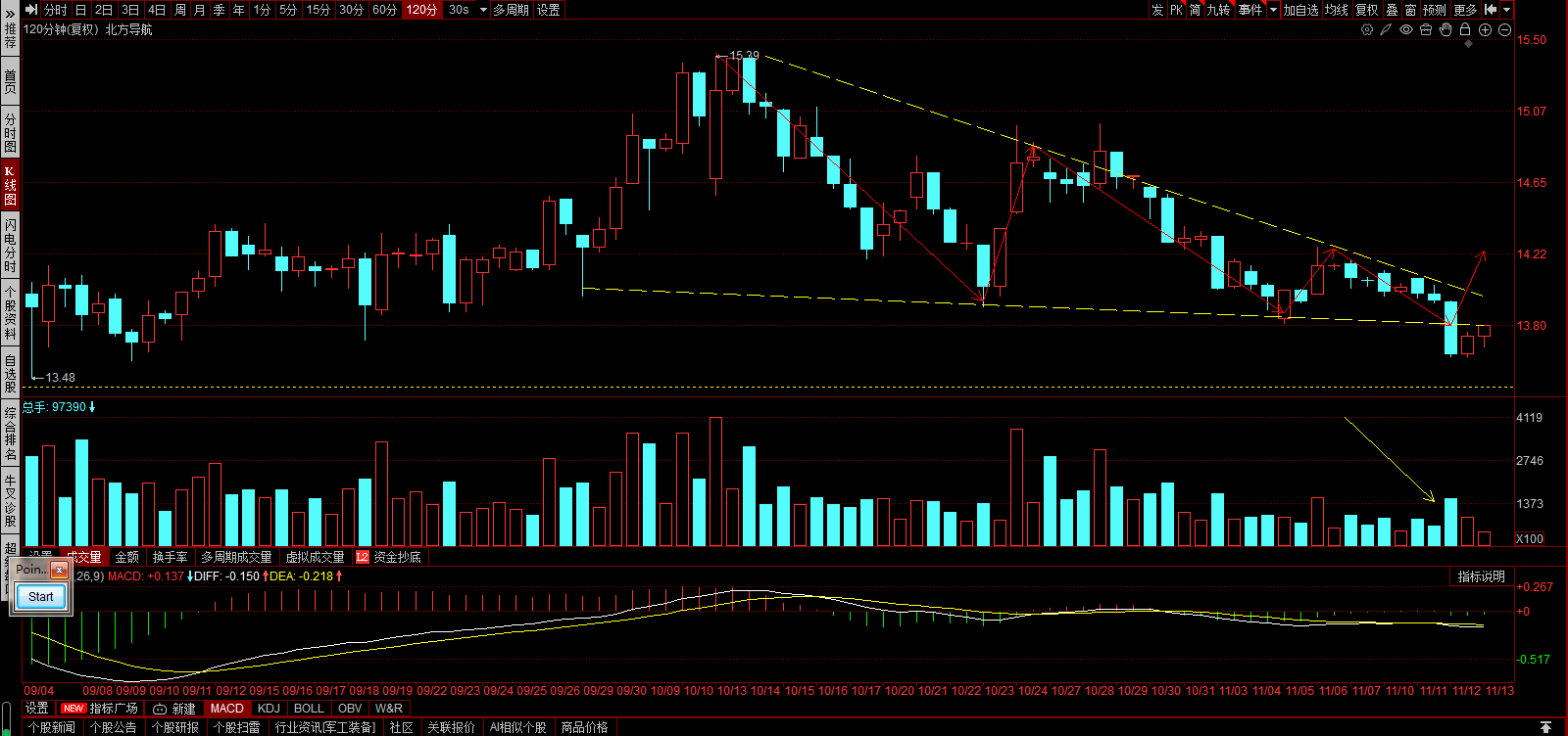 上去了,就是三角形破位洗,黄金坑。能上去吗?