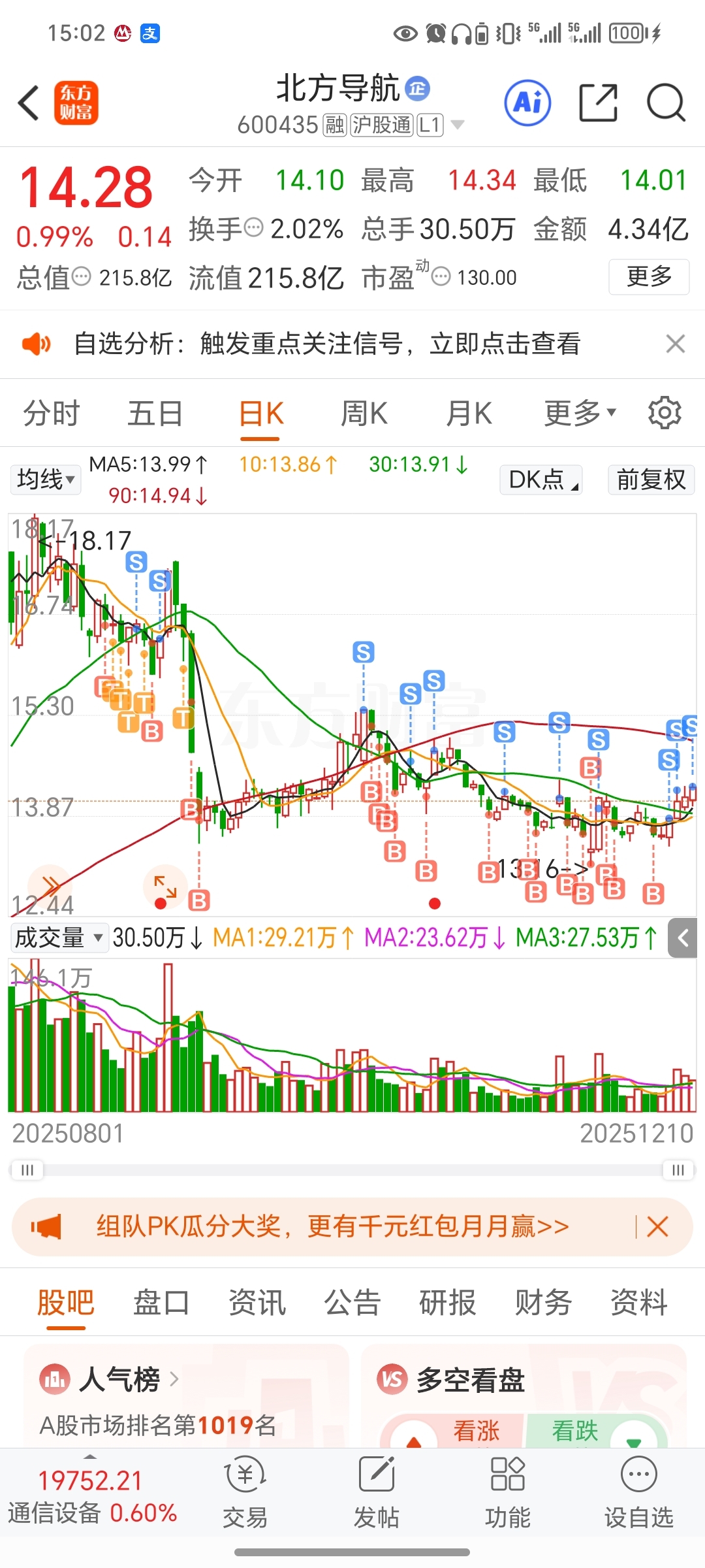 $北方导航(SH600435)$ 持仓4个月了,感谢主力不杀之恩