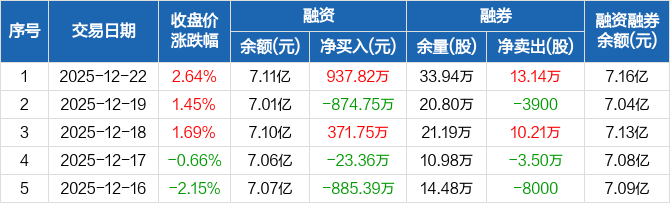 北方导航:融资净买入937.82万元,融资余额7.11亿元(12-22)