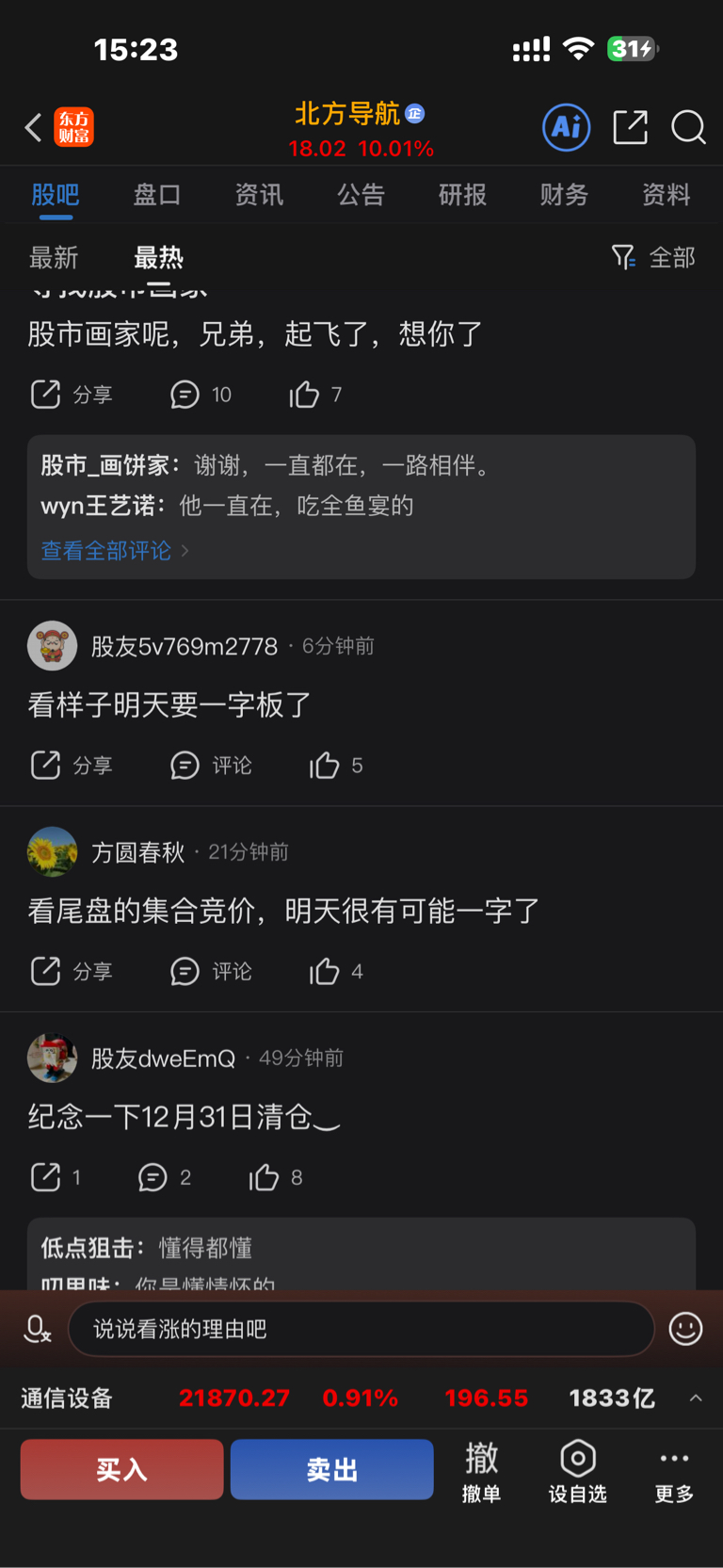 $北方导航(SH600435)$ 这么多叫一字的,明天大家记得冲高卖就完事了,要开始出货套人了