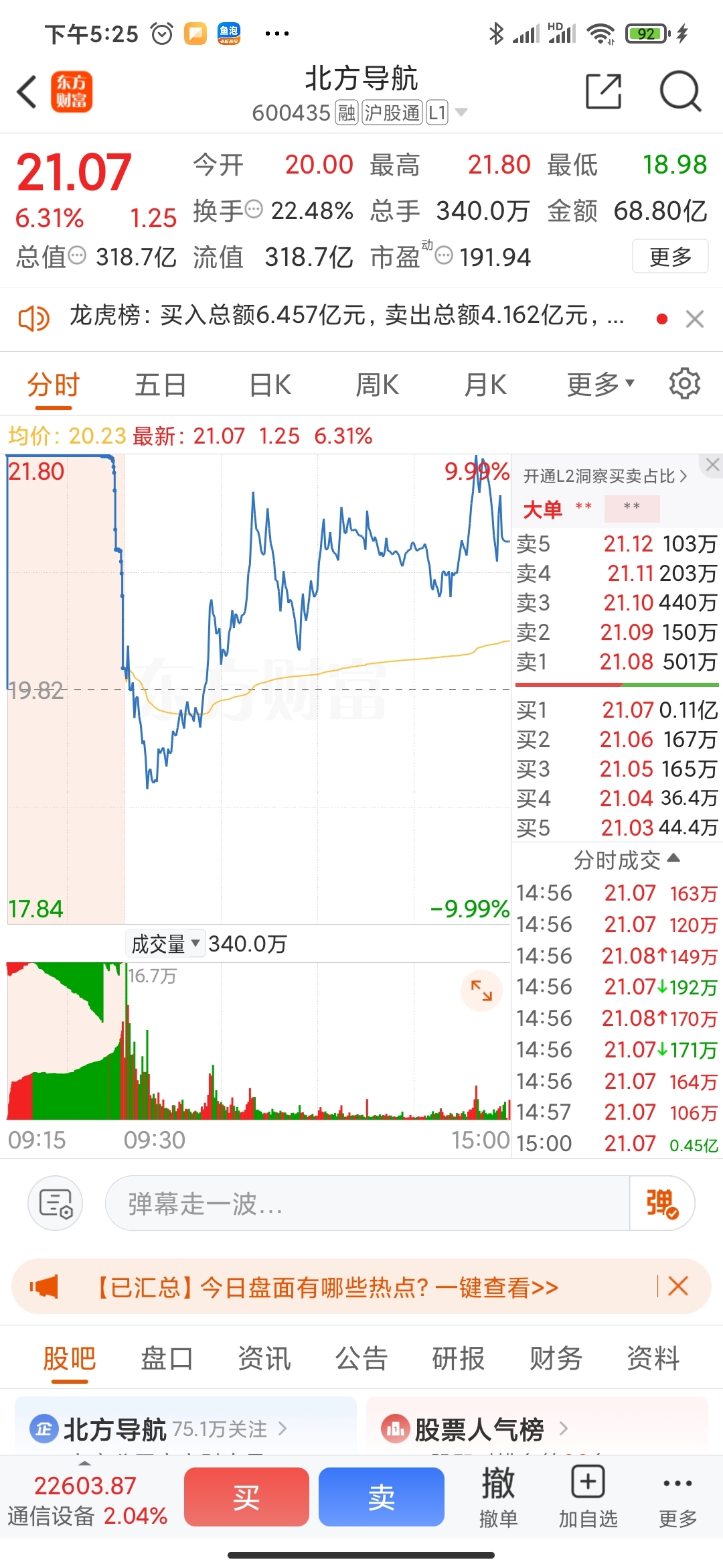 $北方导航(SH600435)$ 明天杀跌连着两日开盘杀