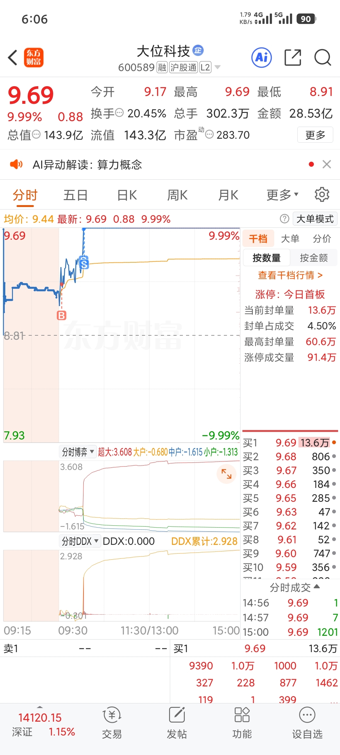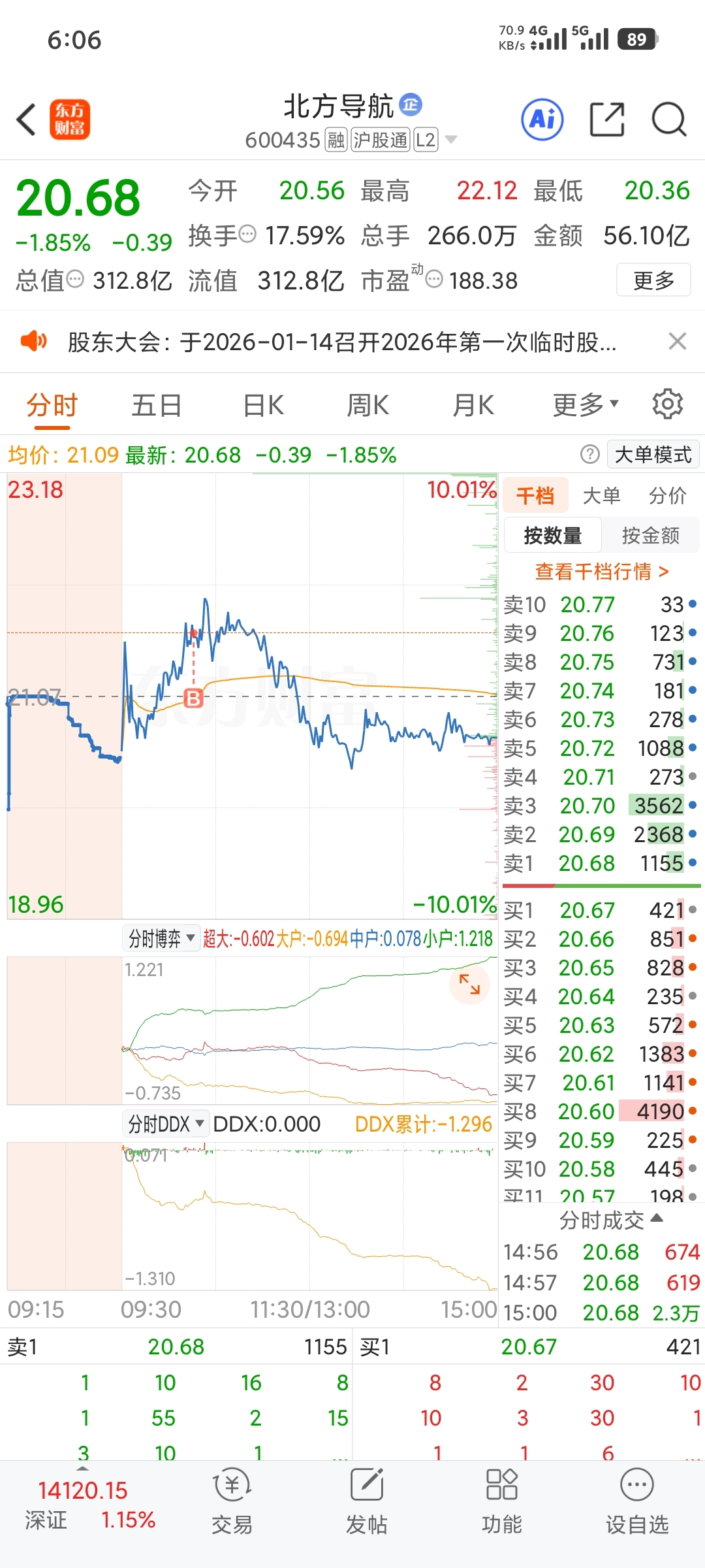 大位t出资金打入北方导航,主力资金分歧,量化砸出做T,龙头流出的资金去了其他板块,没切入后排,下周看板块龙头情绪,这票现在算板块弱势票(本计划买回花生,克服不了自身心理,撤了单子)