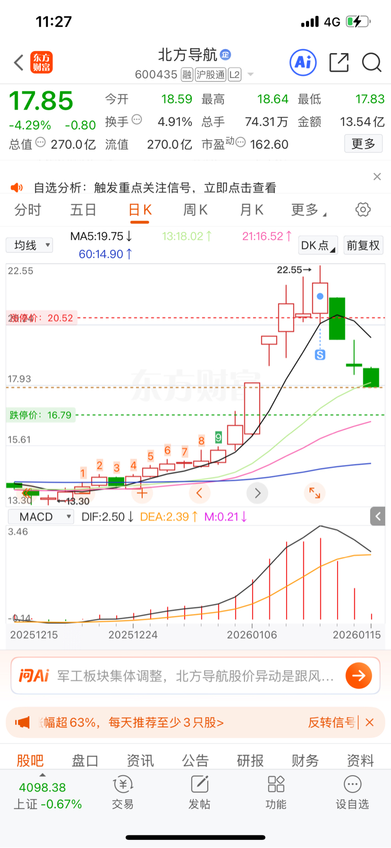 $北方导航(SH600435)$ 拿了几个月自己的感觉还是对的