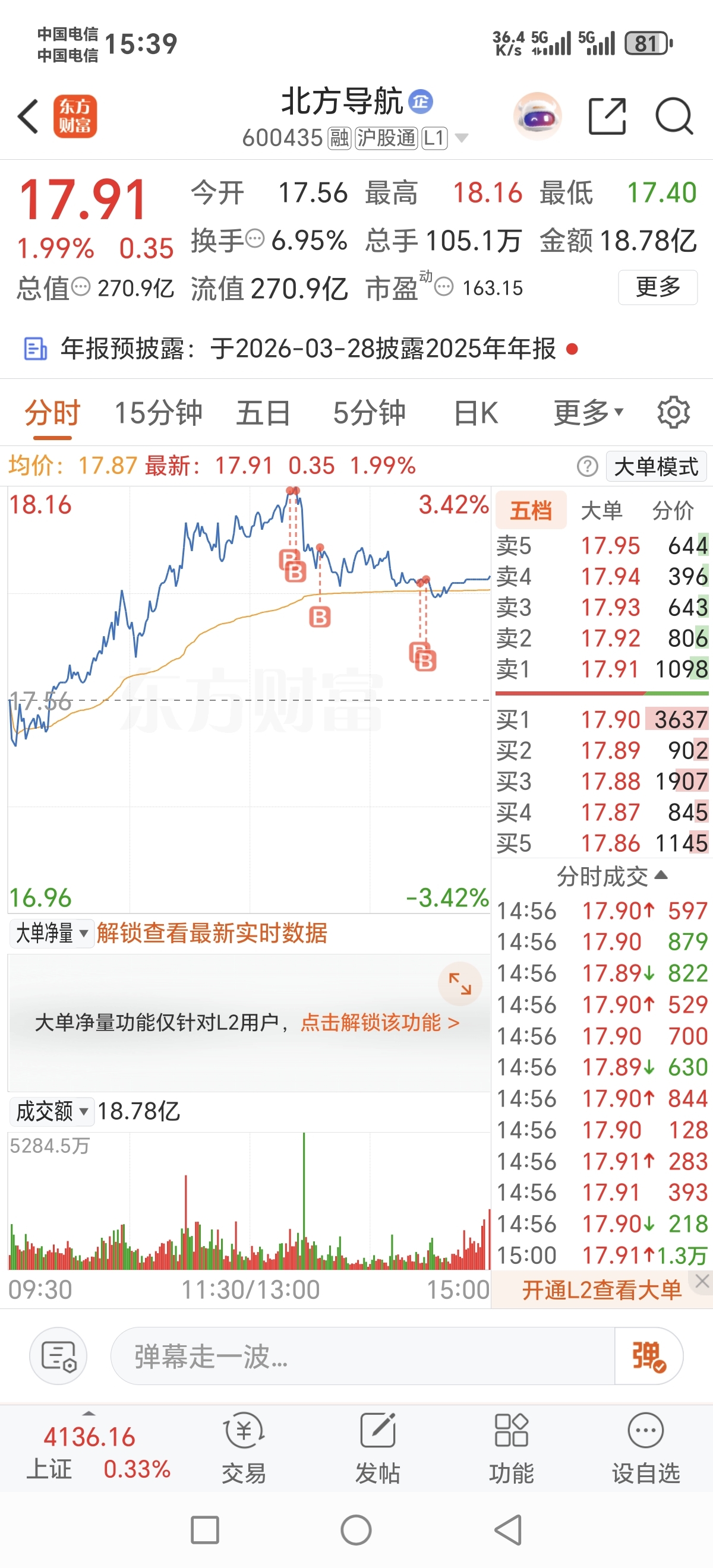 $北方导航(SH600435)$ 今天分五批:买入,总投入40万,成本18.02元,希望下周一周二涨停