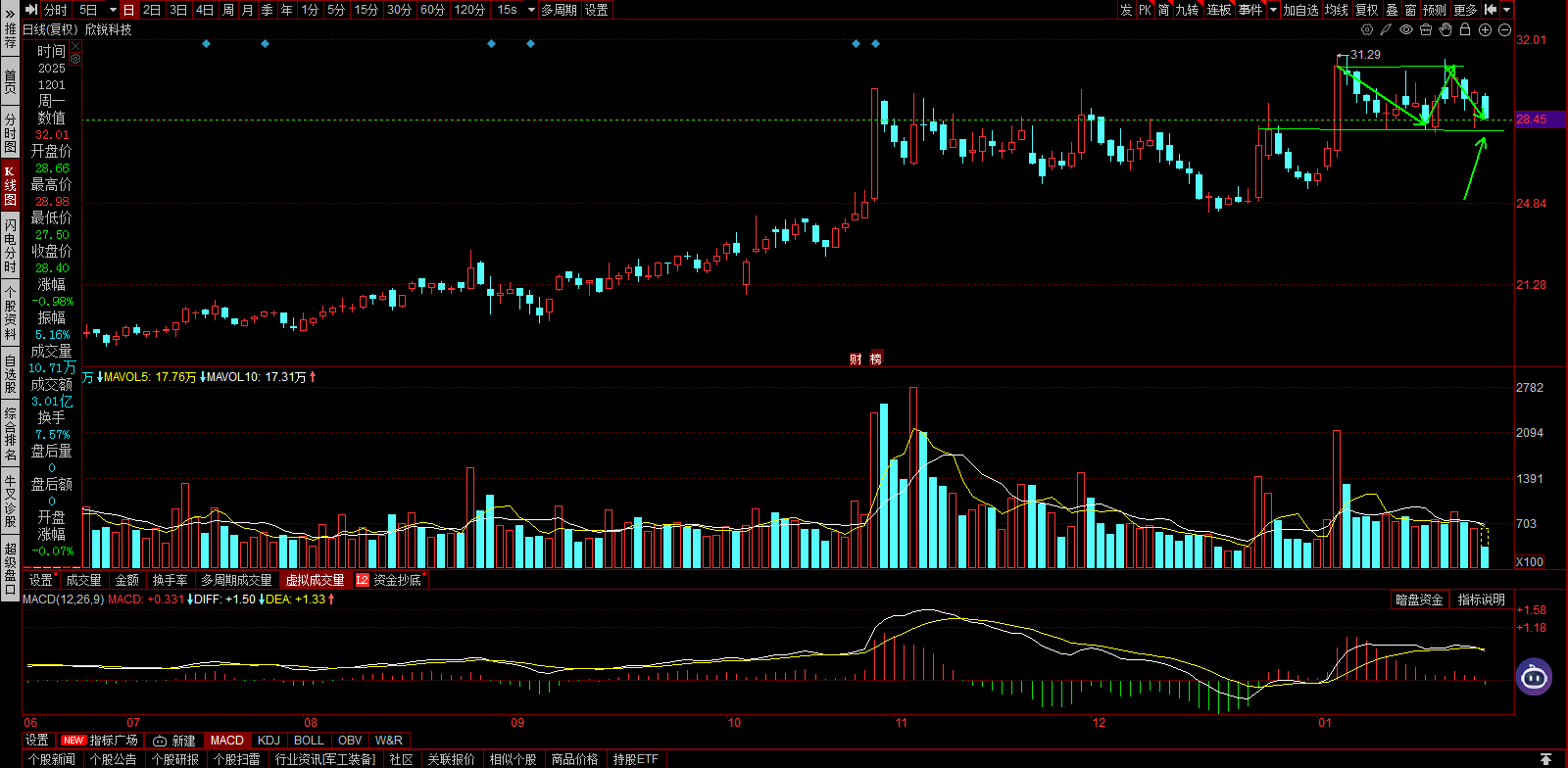欣锐科技,买阴不买阳,坐等上涨。