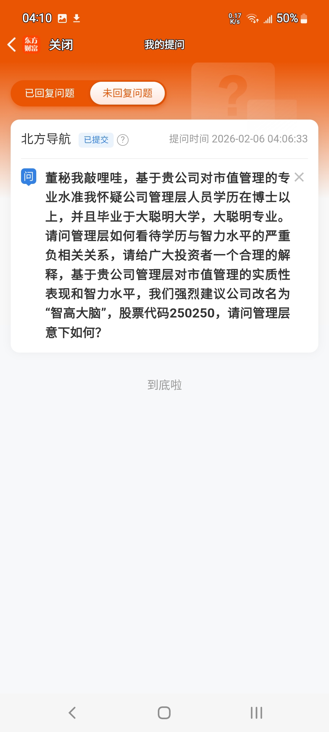 $北方导航(SH600435)$ 铁铁们,我已经提问了,等待回复吧。