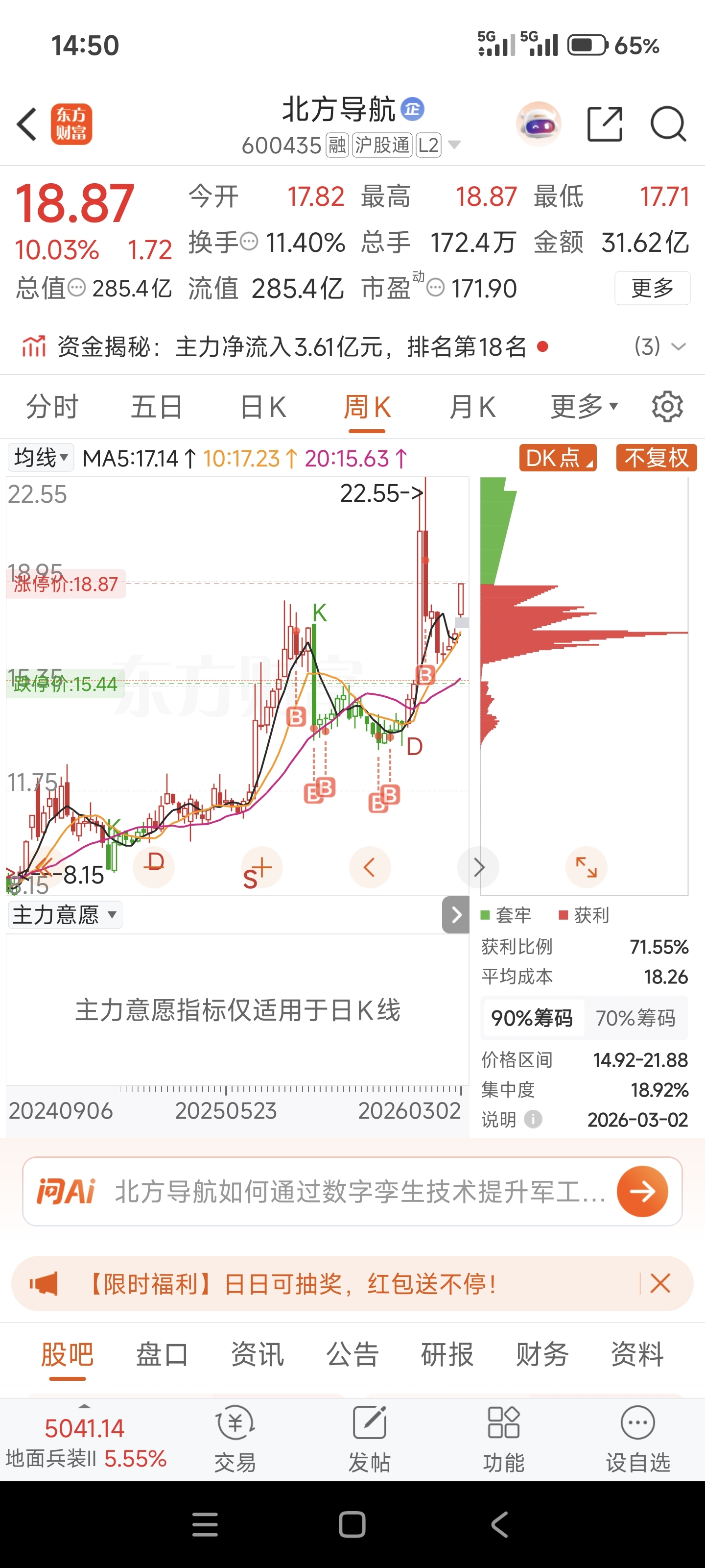 $北方导航(SH600435)$ 一直都在从未卖出一股
