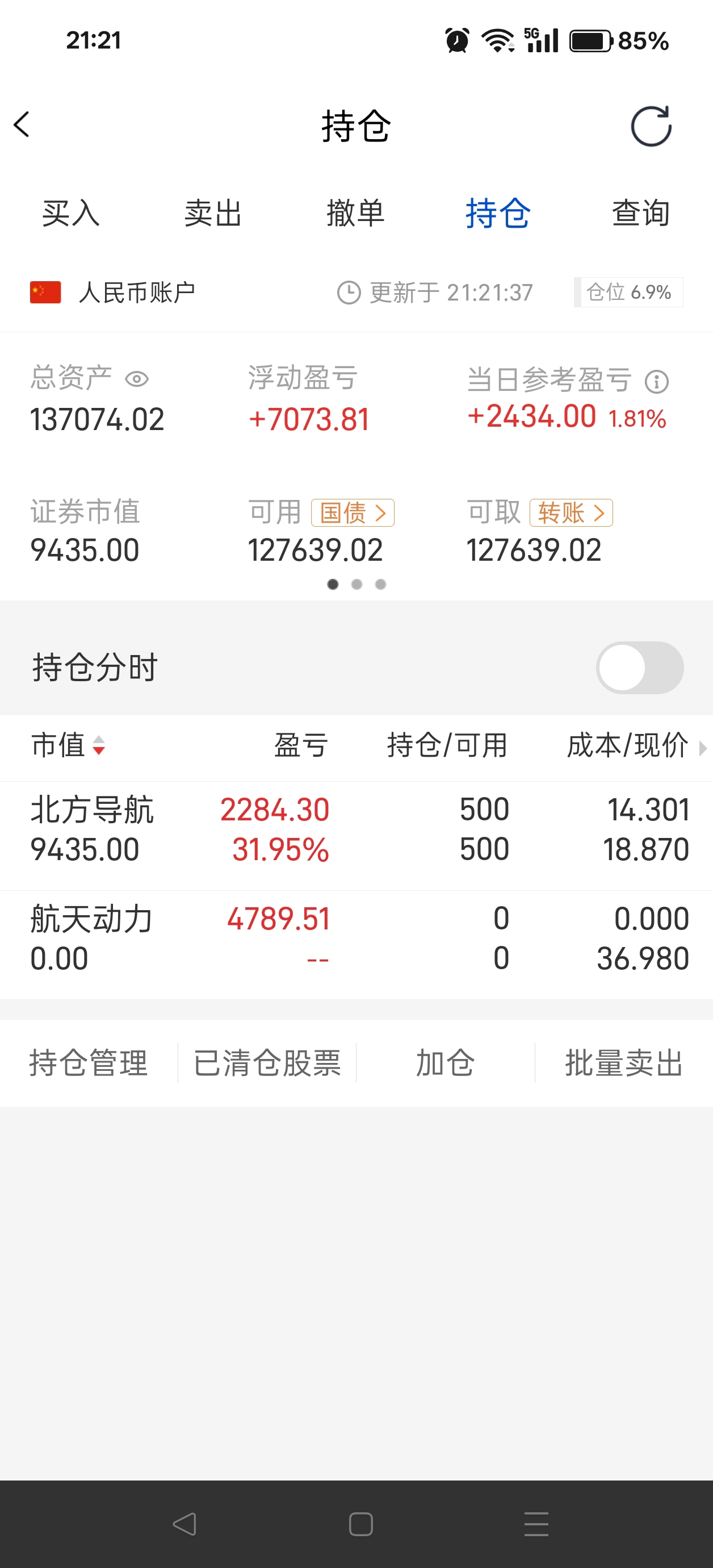 上周重新激活停用10年帐户,星期三就买了航天动力和北方导航,航天动力今早清空了,