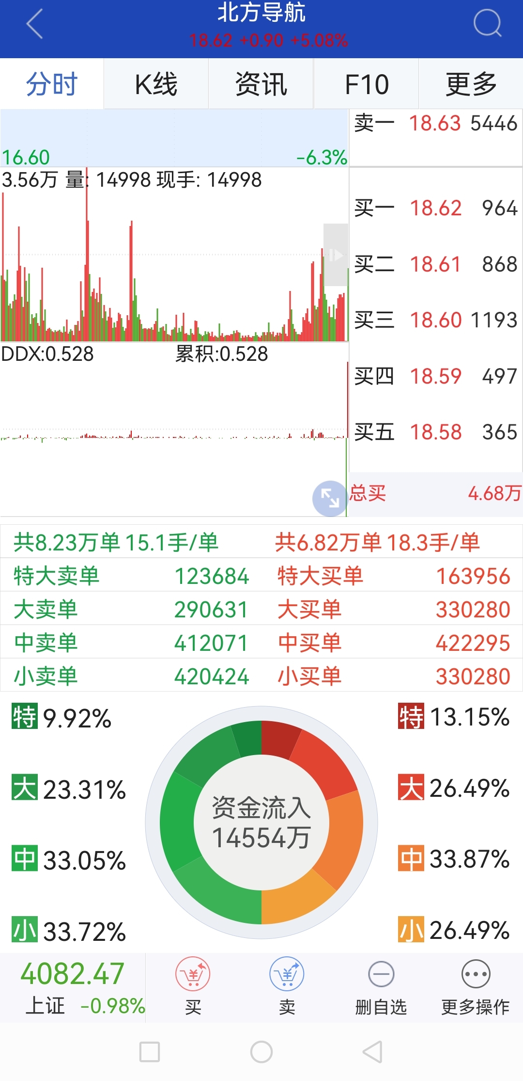 $北方导航(SH600435)$ 我真的不明白,还有人说什么主力在跑什么散户被套,你们会不会看资金的走向呀。自己看看下面的资金走向吧今天走的都是散户吧!这就是为什么散户赚不到钱的原因。