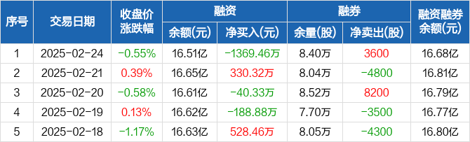片仔癀:融资净偿还1369.46万元,融资余额16.51亿元(02-24)
