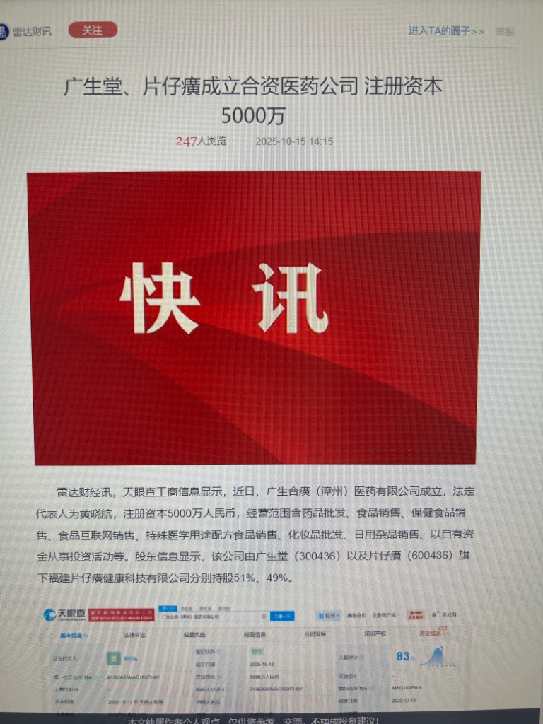 $片仔癀(SH600436)$ $广生堂(SZ300436)$ 大广,带带孙公司片仔癀吧