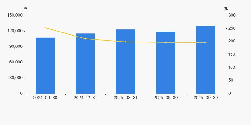 2024年9月30日至今,公司股东户数显著增长,区间涨幅为21.31%。2024年9月30日至2025年9月30日区间股价下降22.27%。