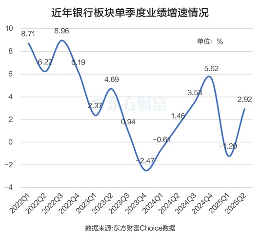 业绩来看,今年第二季度上市银行合计实现归母净利润5361.62亿元,同比增长2.92%。而今年第一季度,上市银行的业绩是同比下滑1.2%。