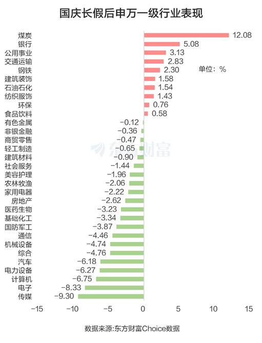 事实上,国庆长假以后,煤炭板块就持续强势。东方财富Choice数据显示,截至10月20日收盘,煤炭板块节后累计上涨12.08%,居申万一级行业首位,也是唯一涨幅超10%的行业。