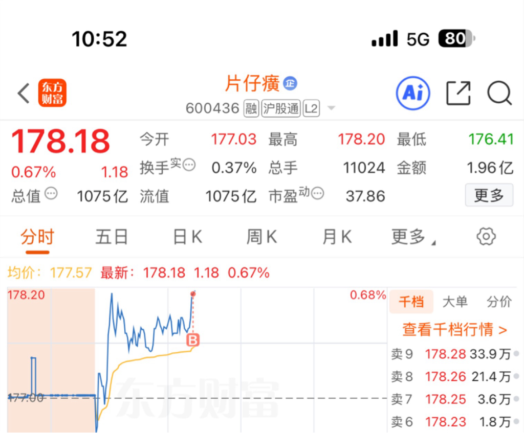 $片仔癀(SH600436)$ 加了一下,别挂我,谢谢