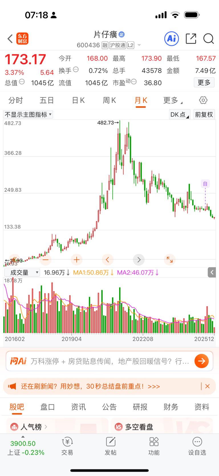 $片仔癀(SH600436)$ 你一个人带崩整个中药生物制品!真有你的!