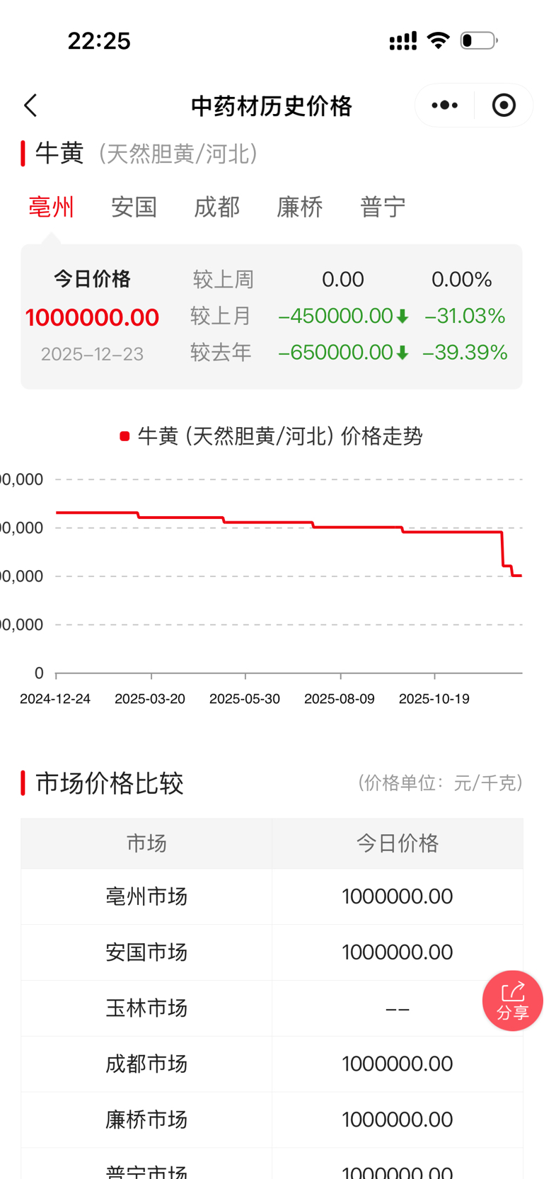 $片仔癀(SH600436)$ 2024年拟放宽进口试点缓解短缺,2025年底投机资金离场、厂家采购放缓导致价格承压。目前100万/公斤,继续下降是确定的!