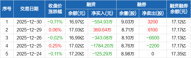 片仔癀:融资净偿还554.93万元,融资余额16.97亿元(12-30)