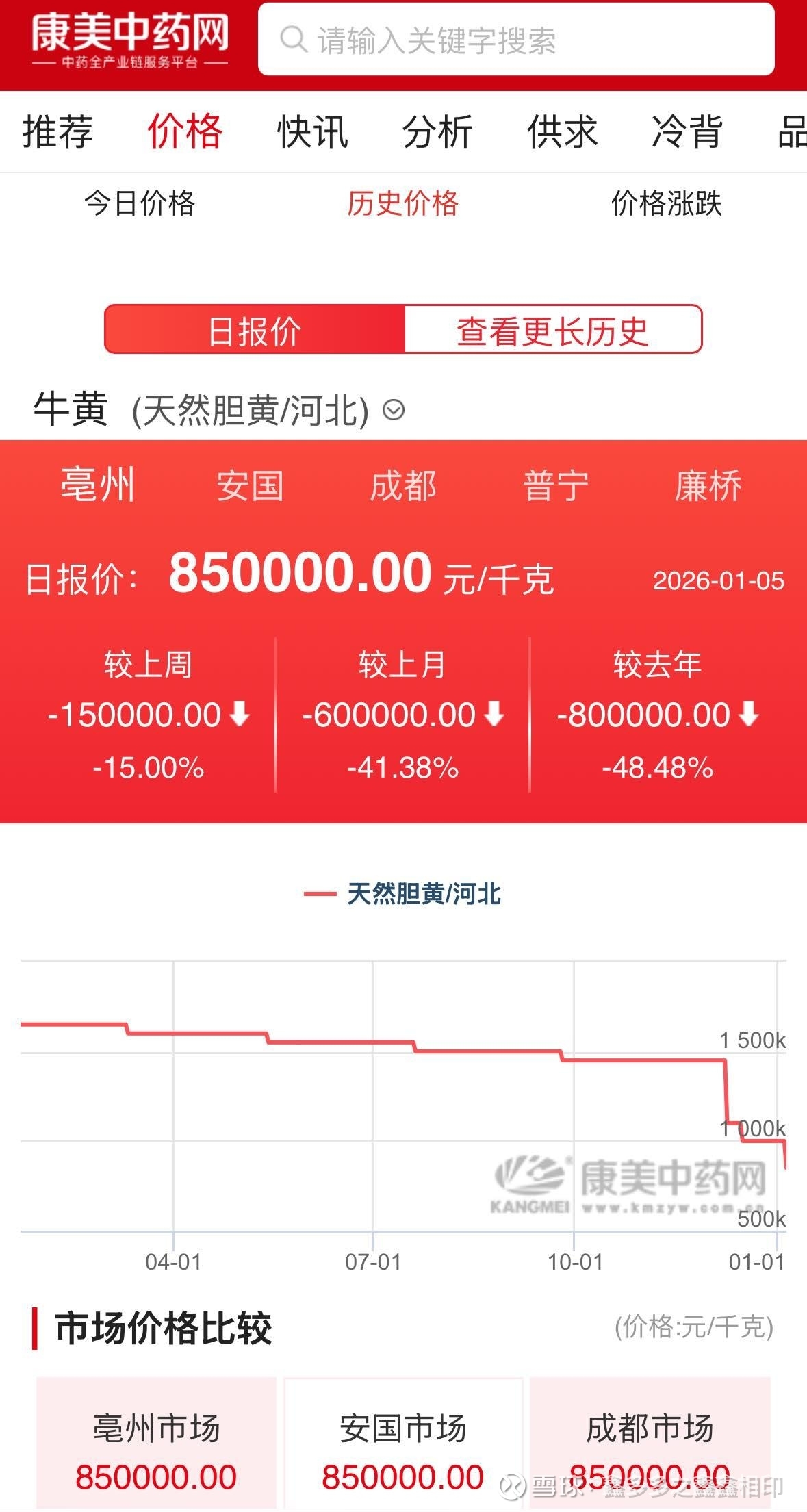 $片仔癀(SH600436)$ 天然牛黄又双叒叕下跌了