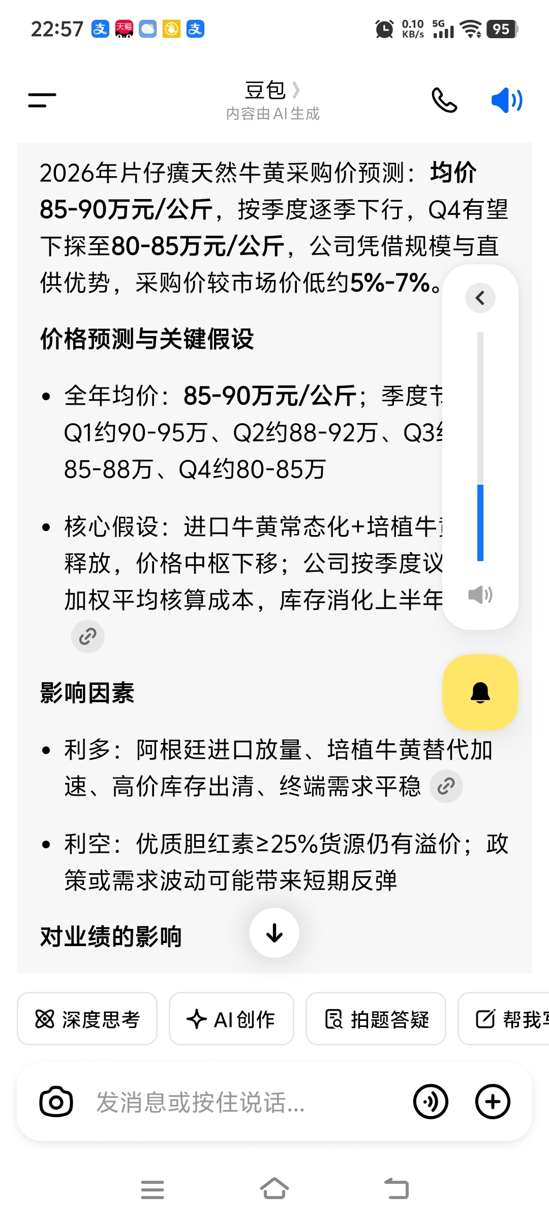 这是AI预测片仔癀2026年牛黄采购价格,看着靠谱的,2026年采购均价85-9