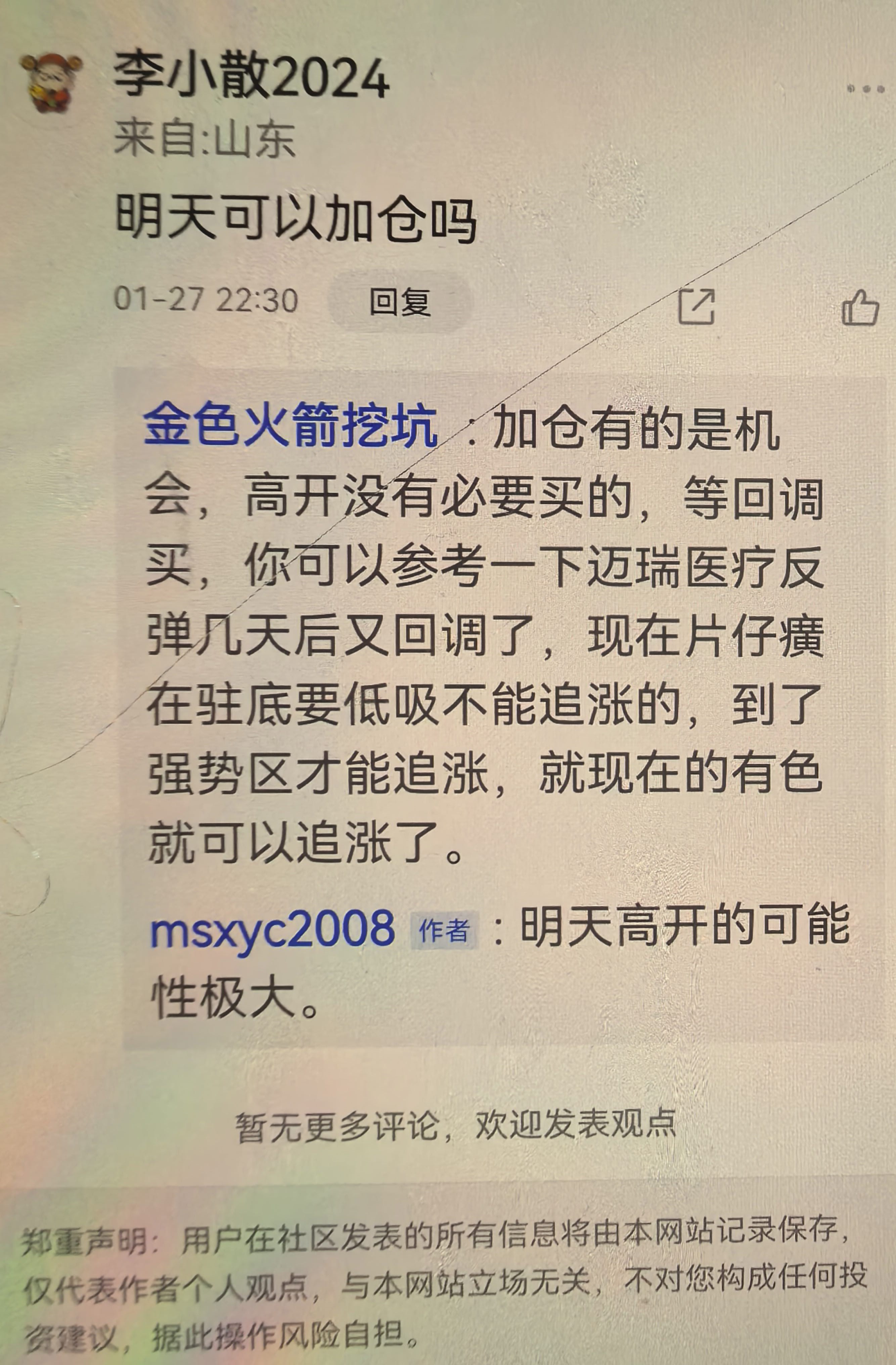 温馨提示: 1.根据《证券法》规定,禁止编造、传播虚假信息或者误导性信息,扰乱证券市场;2.用户在本社区发表的所有资料、言论等仅代表个人观点,与本网站立场无关,不对您构成任何投资建议。用户应基于自己的独立判断,自行决定证券投资并承担相应风险。《东方财富社区管理规定》