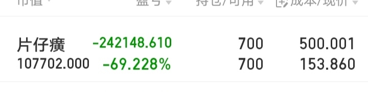 $片仔癀(SH600436)$ 来,都报下成本,我先说,我700股,我成本500