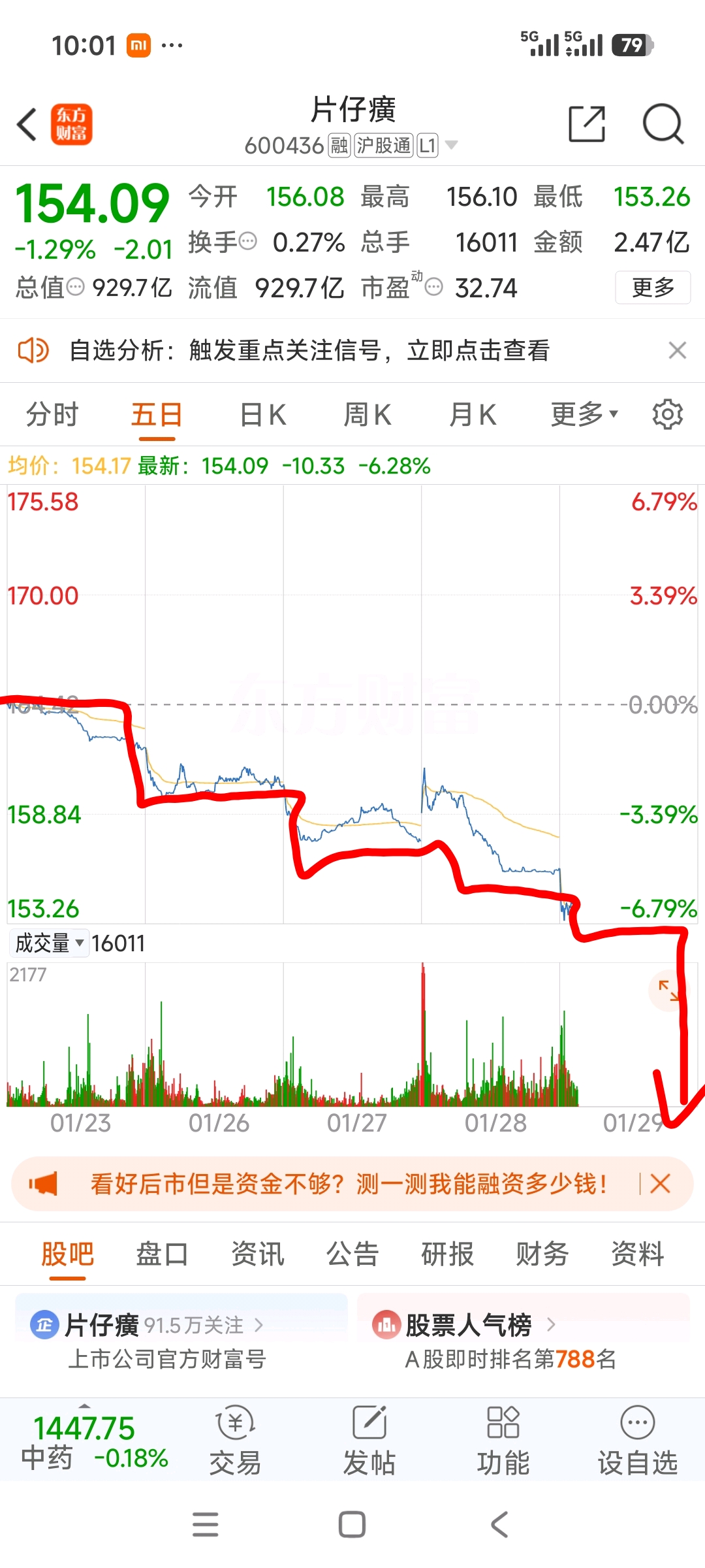 $片仔癀(SH600436)$ 又在下跌横盘制造企稳假象,然后继续下杀?