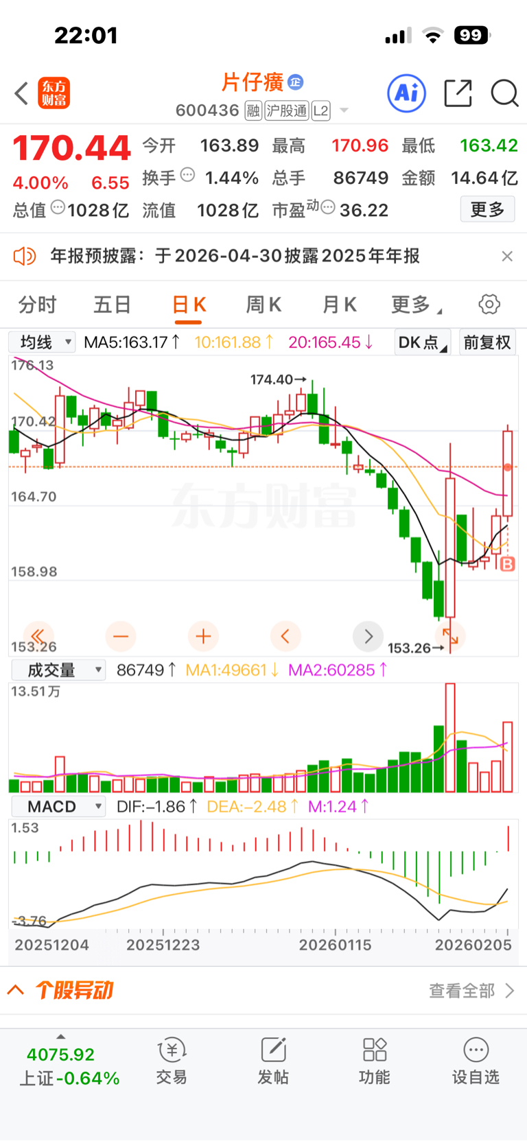 $片仔癀(SH600436)$ 片仔癀终结5年熊市,进入技术性牛市。这次反转将是五年以上的主升浪