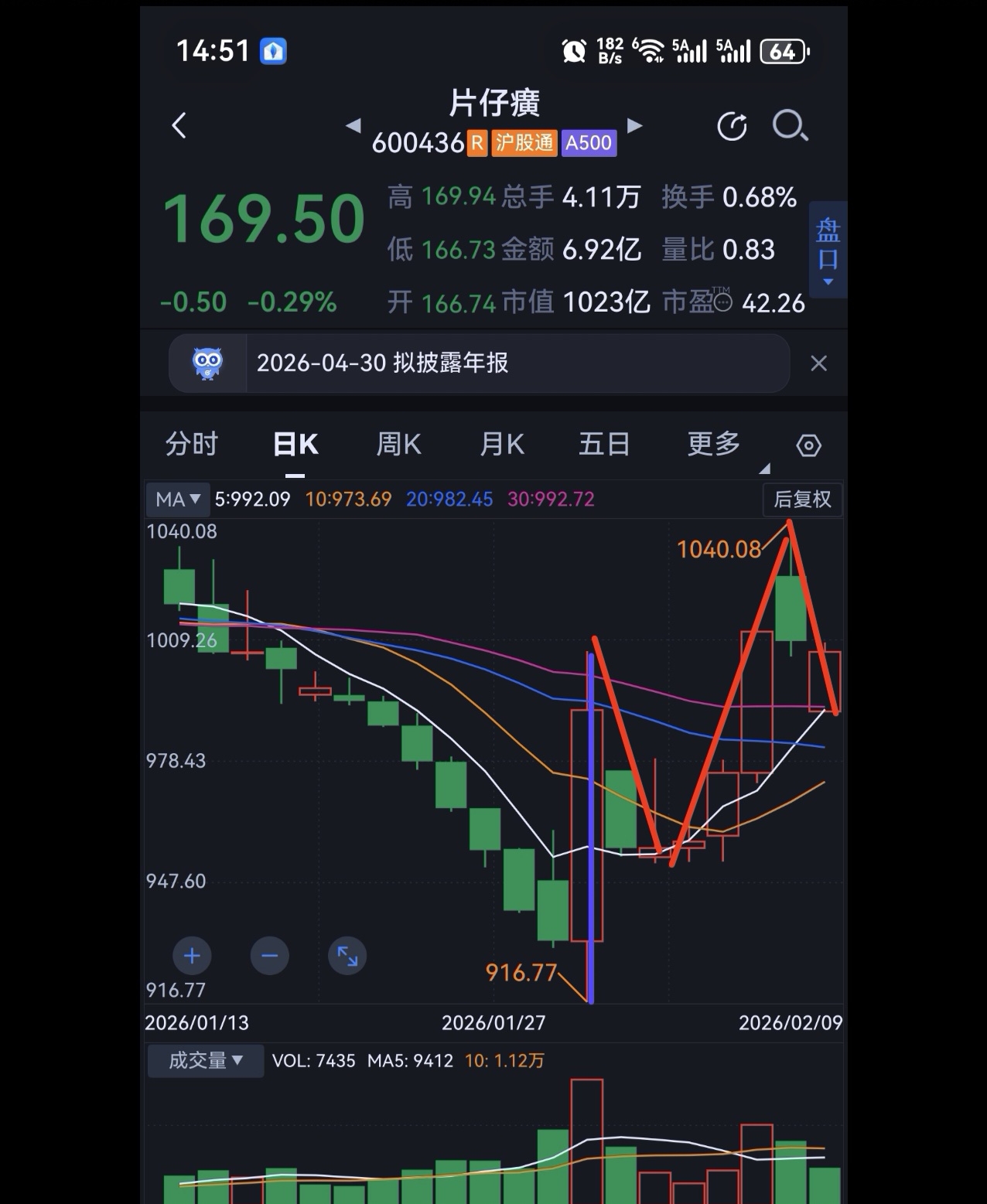 $片仔癀(SH600436)$ 基于走势结构分解错误,短时间内可能没有递归一分钟级别调整的买入机会,目前递归一分钟级别上涨都没确认结束,还在上涨之中,明天可以大涨的方式结束短线上涨。