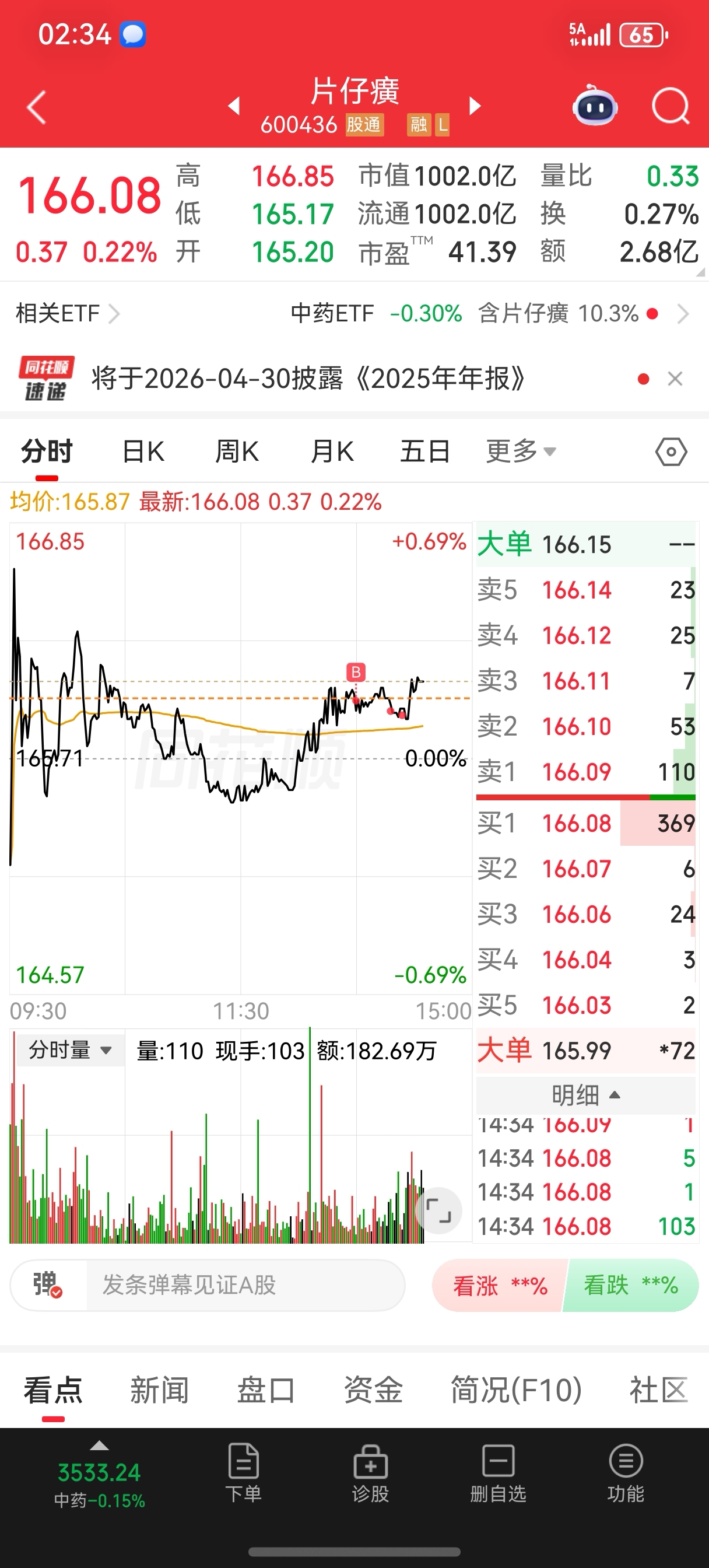 $片仔癀(SH600436)$ 年前不指望你涨了,横住。年后再看,兄弟们过年啦。
