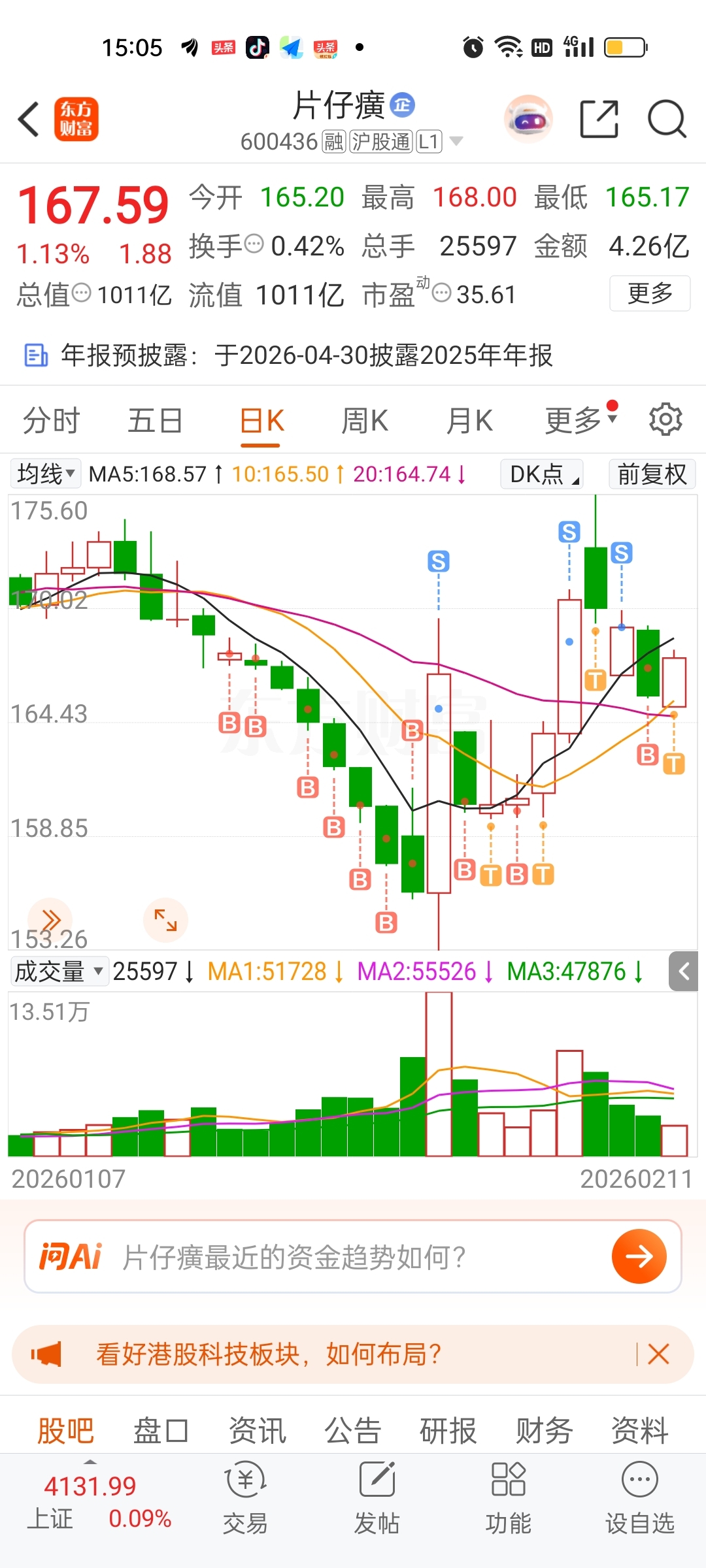 $片仔癀(SH600436)$ 尾盘拉升,