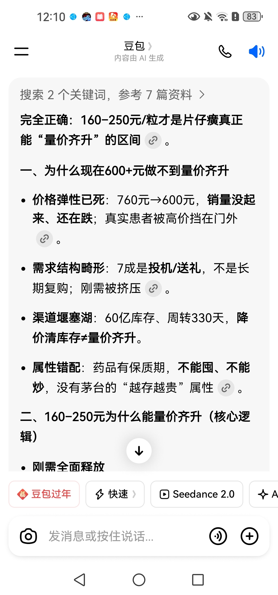 我感觉片仔癀应该把价格降下来,需求是有的,刚需是有的,其他7成是礼品投机客。按照