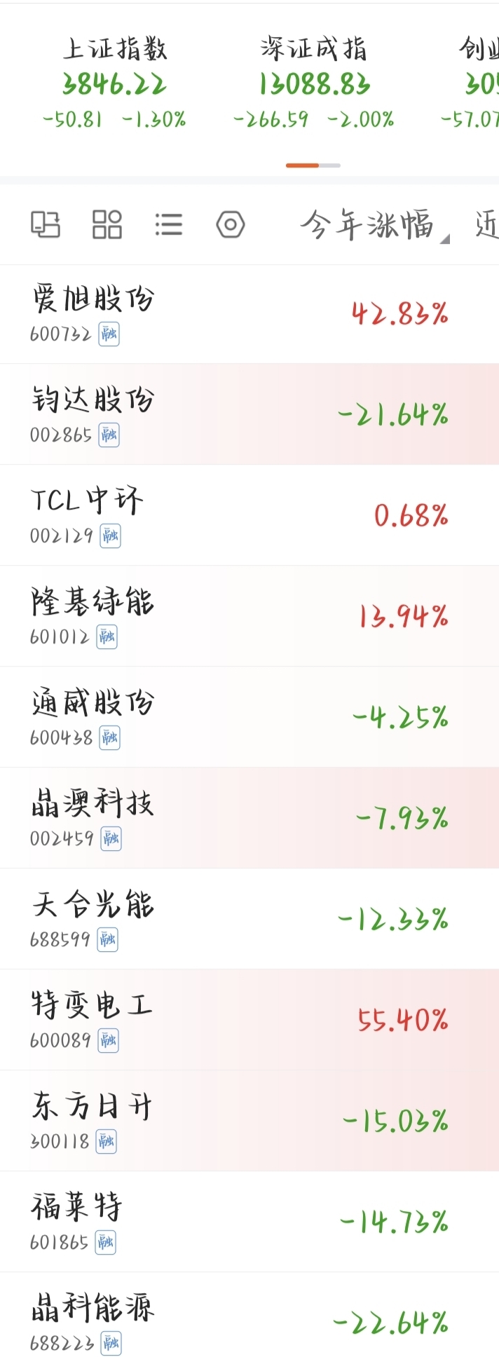 $通威股份(SH600438)$ $隆基绿能(SH601012)$ 真不害臊啊,你们何德何能跟跌,天塌了科技顶着,金属固态锂电顶着,证券保险顶着,储能顶着,风电顶着,什么时候轮到你们5300支股里的倒数光伏了