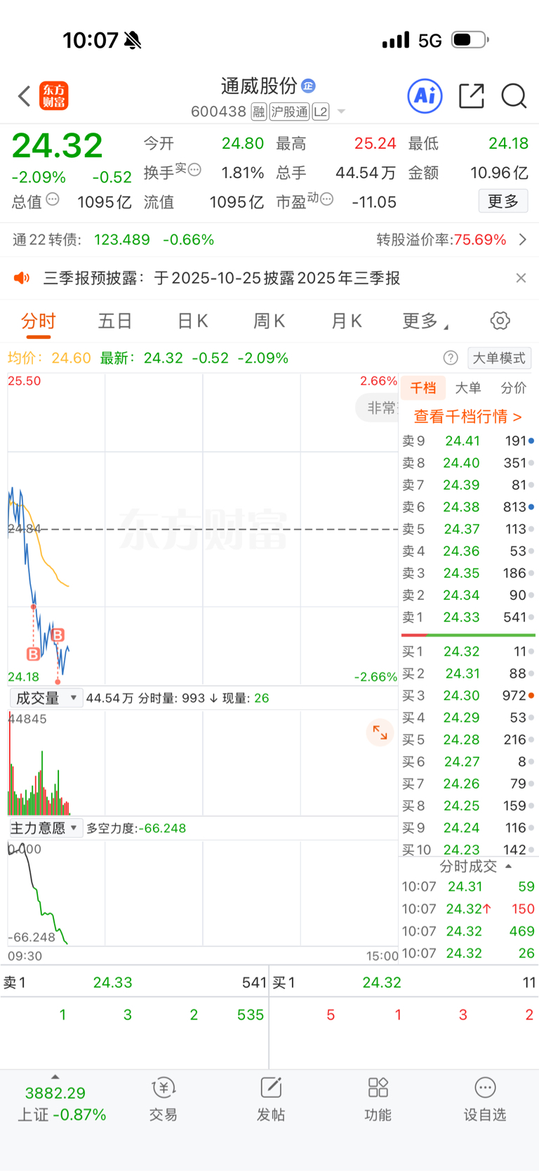$通威股份(SH600438)$ 昨天24.81减仓5000股,今天24.33接回来了