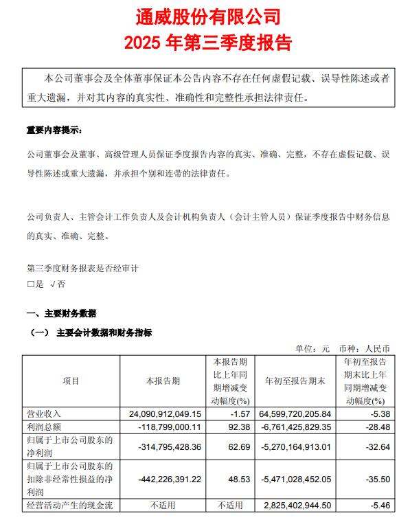 通威股份:前三季度净亏损52.7亿元 光伏产业链各环节价格有所回升