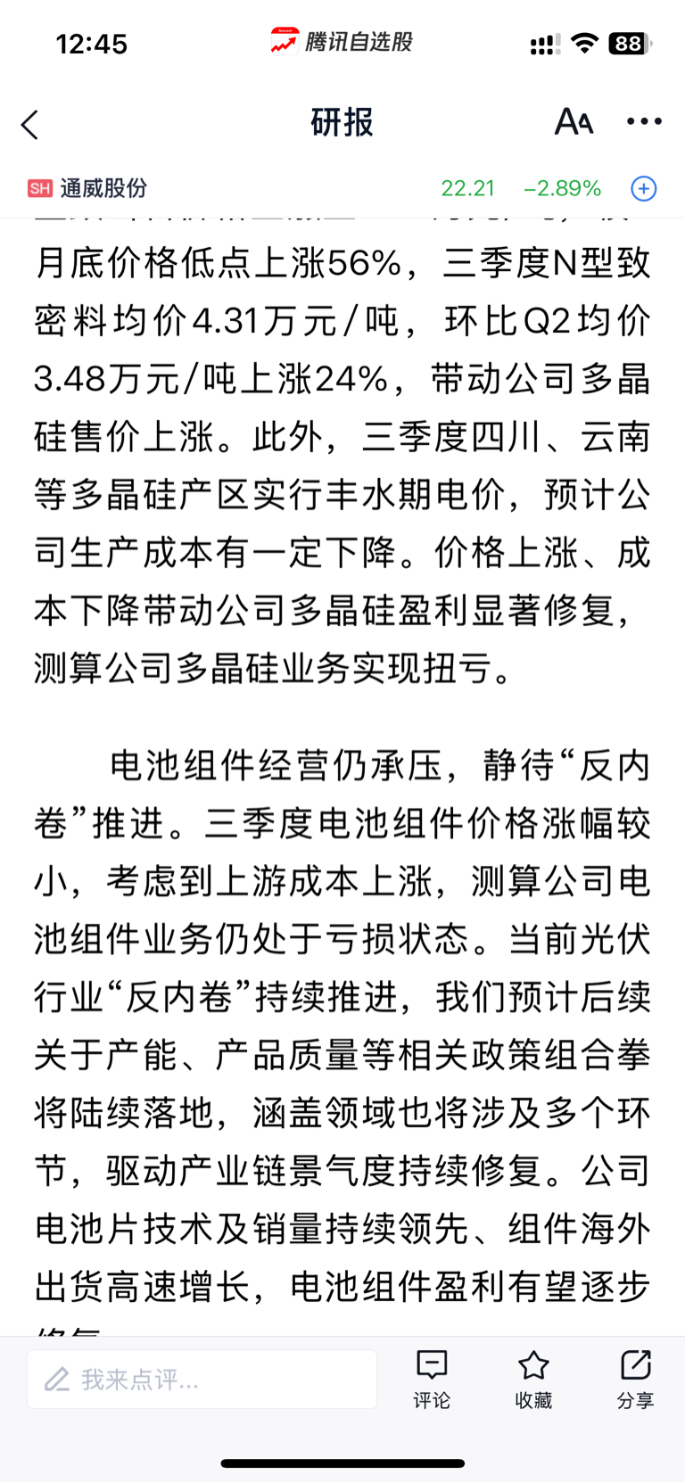 $通威股份(SH600438)$ 硅料已盈利,电池组件拖累导致亏损