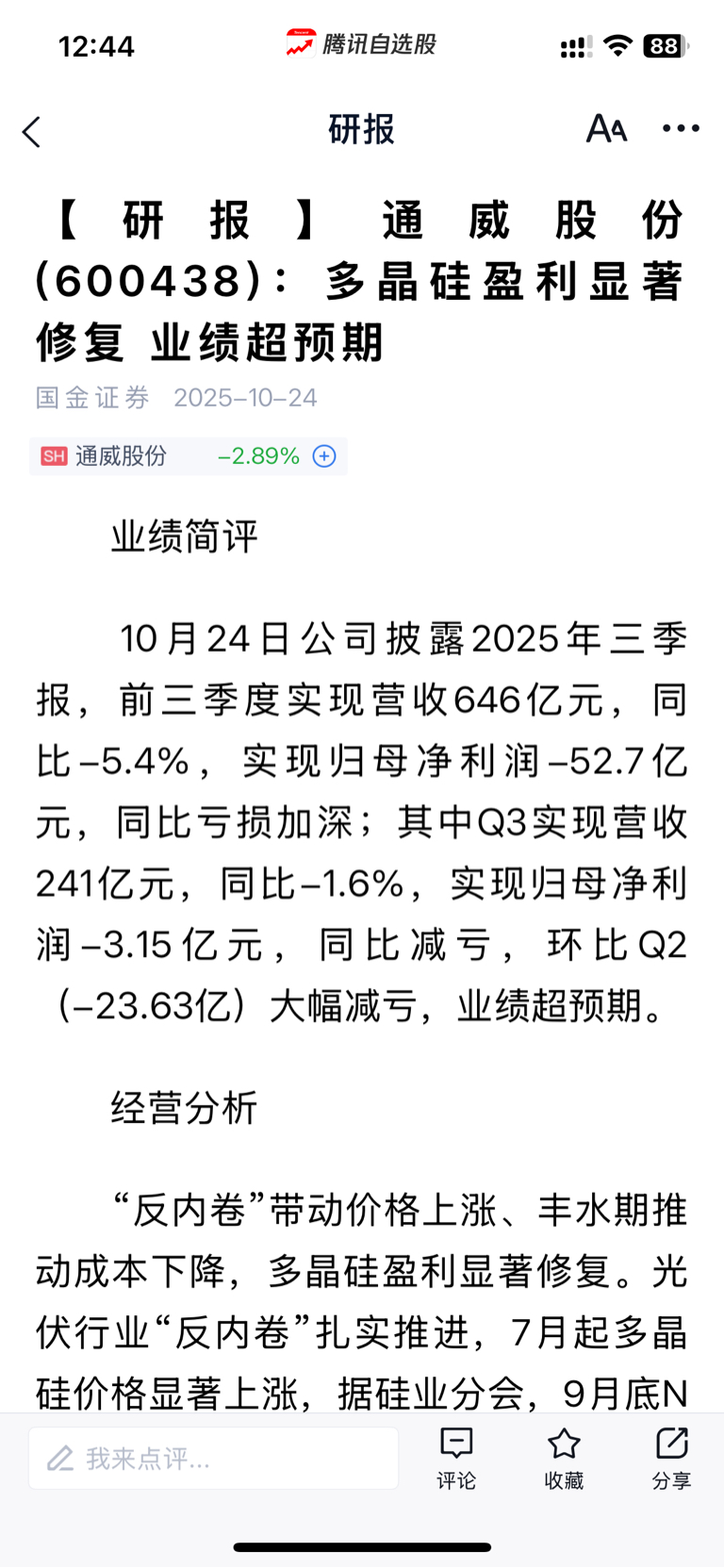 $通威股份(SH600438)$  硅料已盈利,电池组件拖累导致亏损